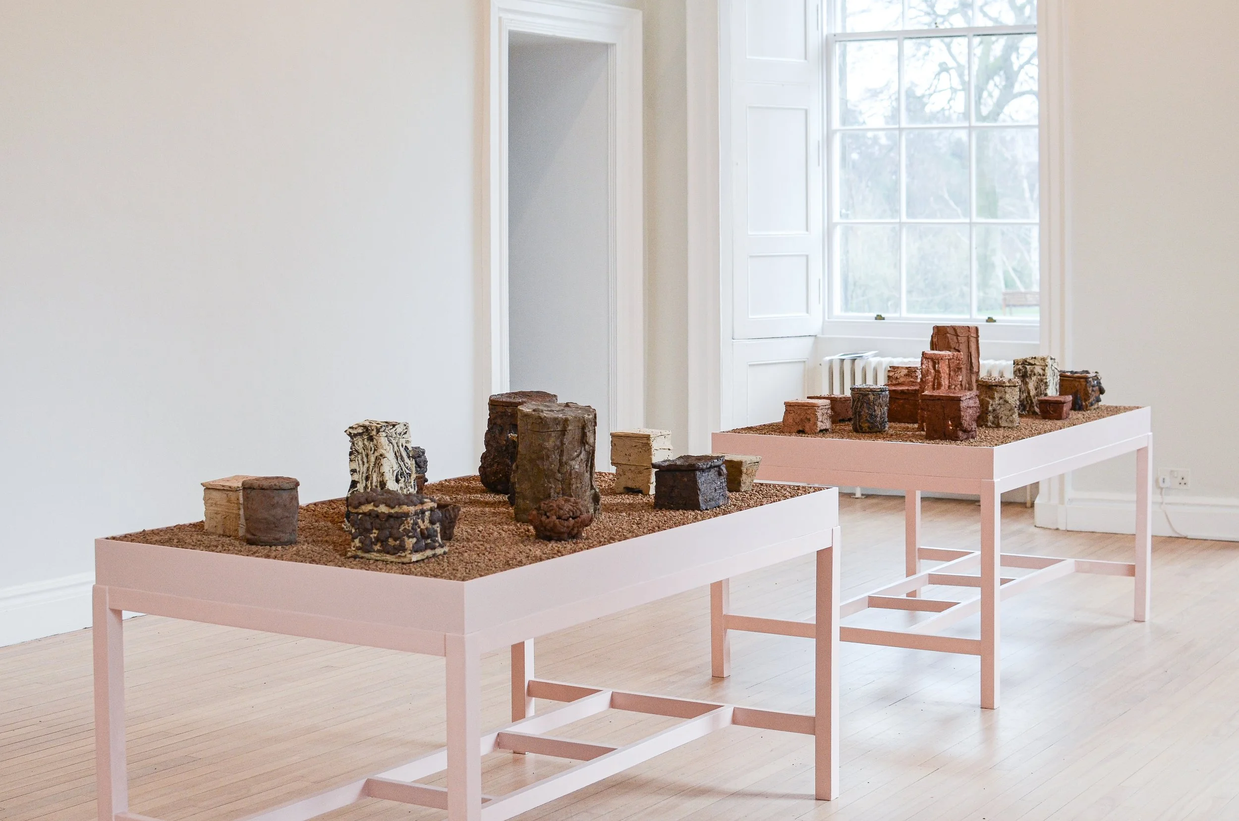 Installed across beds of granular unfired clay, the works extend this dialogue into space, forming a shifting terrain that reflects the ongoing relationship between land, material, and maker.